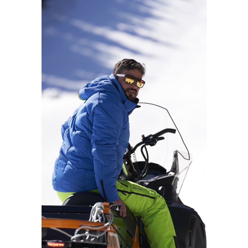 Якето е изработено от най-висок клас материали: четиристранно разтеглив плат с водоустойчивост/дишане 20 000/20 000 и изолация от синтетичен пух Micronic с безшевна конструкция Box-Baffle за максимална водоупорност без „студени точки“. EDGAR е правилният избор за скиори, които търсят уютна топлина на пухено яке, без да правят компромис с водопроникването при класическо изпълнение на пухените джобове.